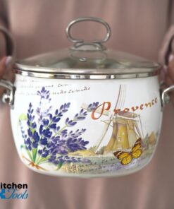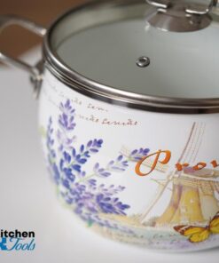 Oala emailata 2.4L, 18cm, capac din sticla yena Bohmann, model lavanda
