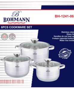 Set 3 oale din inox cu capac, 2.1l, 2.1l, 2.9l, 3.9l, 5.1l, 6,6l, Bohmann.