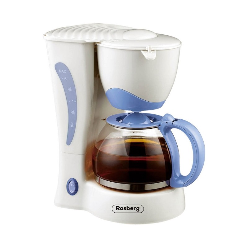 Aparat de cafea Rosberg, 550W, Sistem anti-picurare, 6 cesti, Alb/albastru