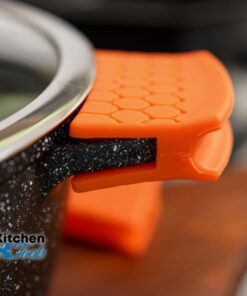 Este insotita de un capac de sticla termorezistenta, maner aluminiu turnat cu silicon atasabil