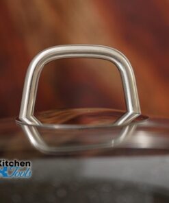 Este insotita de un capac de sticla termorezistenta, maner aluminiu turnat cu silicon atasabil