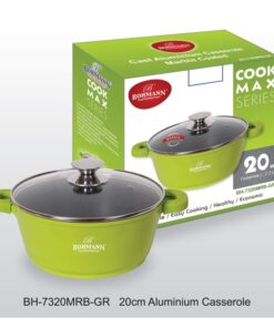 Cratita Bohmann este insotita de un capac de sticla termorezistenta, manere din aluminiu turnat si protective din silicon detasabila.