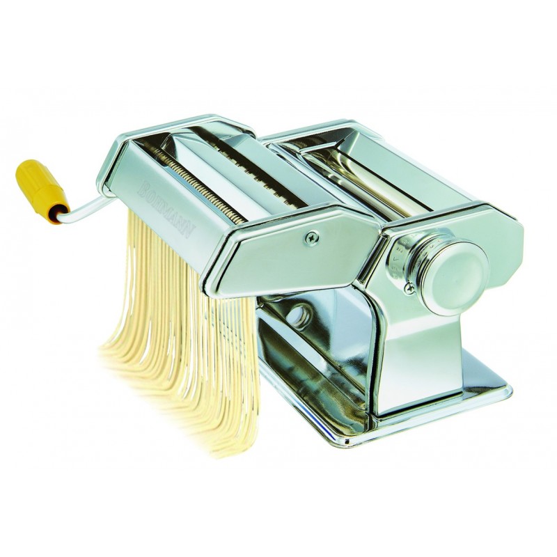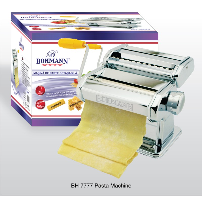 Masina de taitei din otel inoxidabil Bohmann este ideala si totodata esentiala in bucatarie! De acum, cu ajutorul acestui produs veti realiza cu usurinta si rapiditate taitei si alte tipuri de paste fainoase. Masina de taitei Bohmann dispune de role din otel inoxidabil speciale pentru framantare, dimensiunea de taiere a foii este de 150mm, iar grosimea foii sau a taiteilor poate fi de 0.5-1mm datorita celor 7 setari diferite. De asemenea, poate fi folosita si la prepararea tutunului.