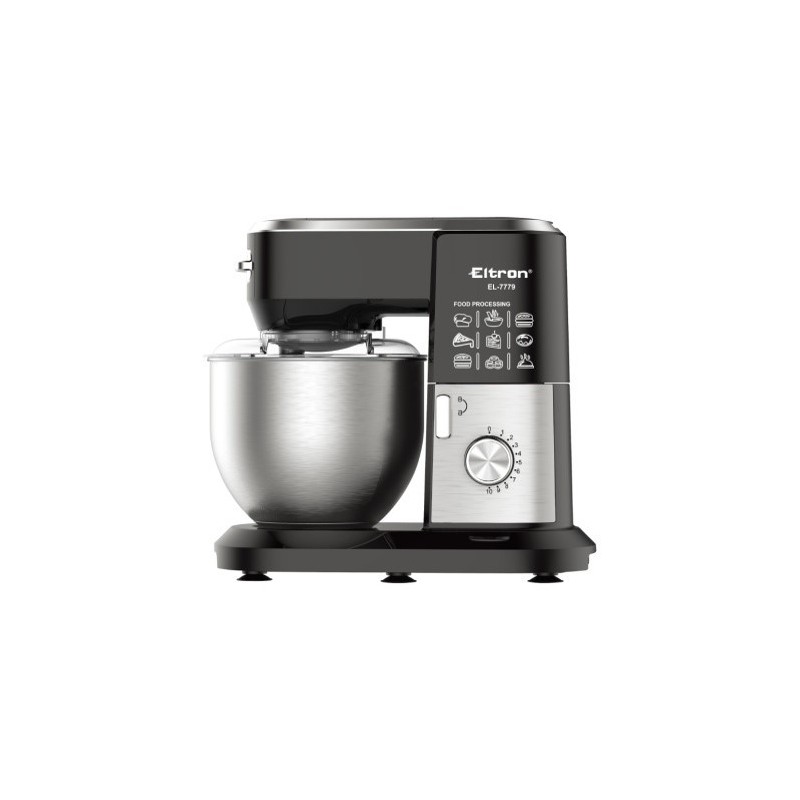 Mixer cu bol din inox, 6L, 10 trepte de viteza, picioruse din cauciuc anti-alunecare, parte superioara demontabila. Accesorii: carlig pentru aluat, paleta din aluminiu, tel si spatula. Putere: 1900W