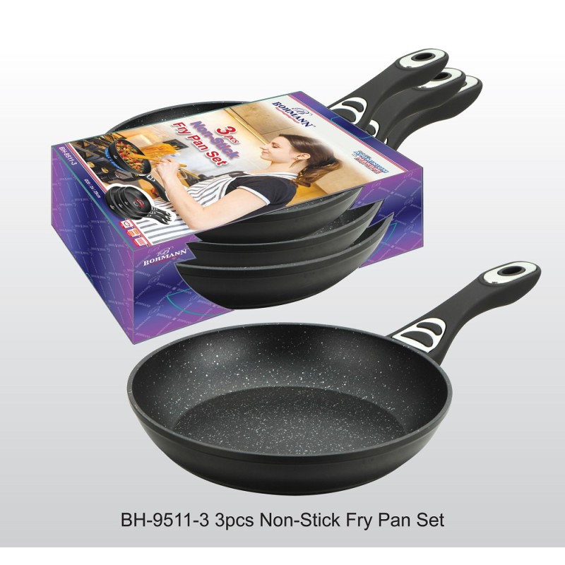 Set 3 tigai din aluminiu forjat fara capac, marmorat, 20/24/28cm, Bohmann.