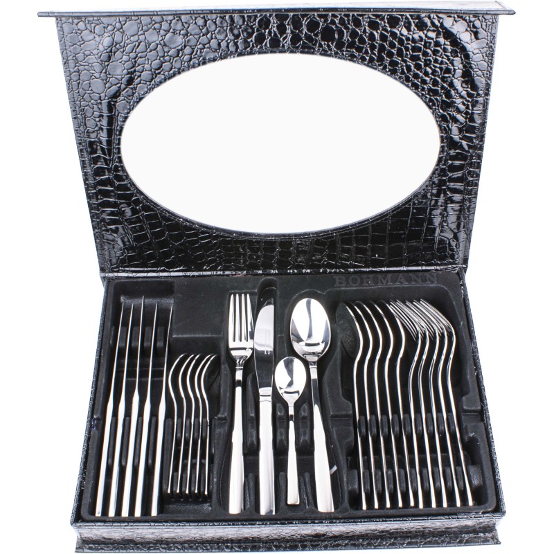 Set tacamuri din inox 18/10, 24 piese, Bohmann Premium in cutie din piele neagra.