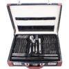 Set tacamuri din inox 18/10, 72 piese, Bohmann Premium in servieta din piele neagra cu insertii maro.
