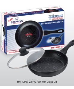 Tigaie din aluminiu forjat, cu invelis interior din granit si capac de sticla termorezistenta cu orificiu de evacuare a aburului, diametru 22cm, Bohmann este ideala datorita stratului non-aderent de granit ce nu permite lipirea alimentelor. Stratul interior de granit este sub forma unui fagure de miere, iar tigaia este formata din 6 straturi diferite, pentru un gatit usor si rapid, fara ca alimentele sa se lipeasca.