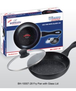 Tigaie din aluminiu forjat, cu invelis interior din granit si capac de sticla termorezistenta cu orificiu de evacuare a aburului, diametru 28cm, Bohmann BH 1004-28MRB este ideala datorita stratului non-aderent de granit ce nu permite lipirea alimentelor. Stratul interior de granit este sub forma unui fagure de miere, iar tigaia este formata din 6 straturi diferite, pentru un gatit usor si rapid, fara ca alimentele sa se lipeasca.