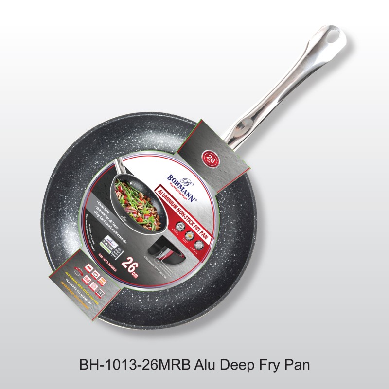 Tigaie din aluminiu forjat cu maner din inox, interior marmorat, fara capac, 26x5cm.
