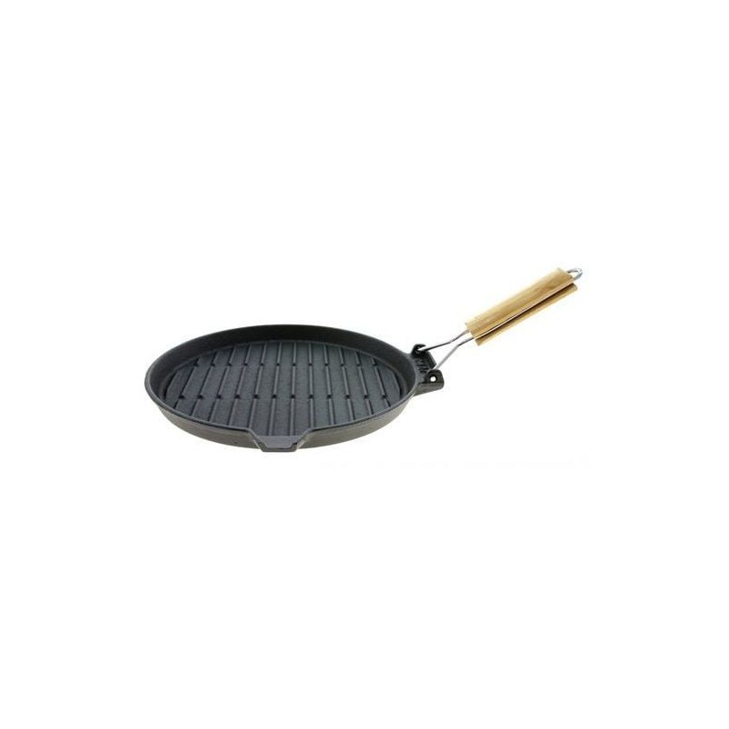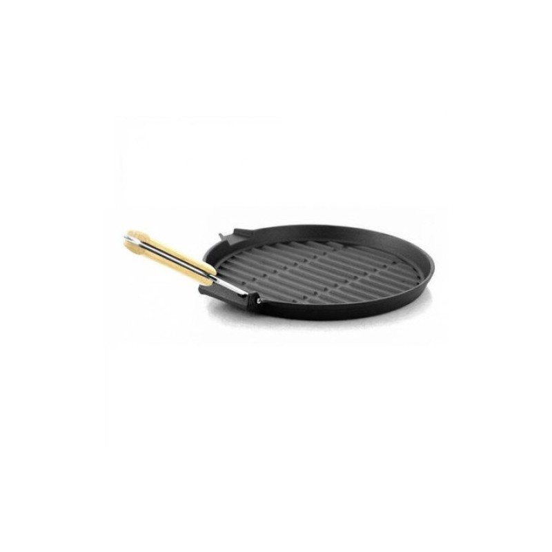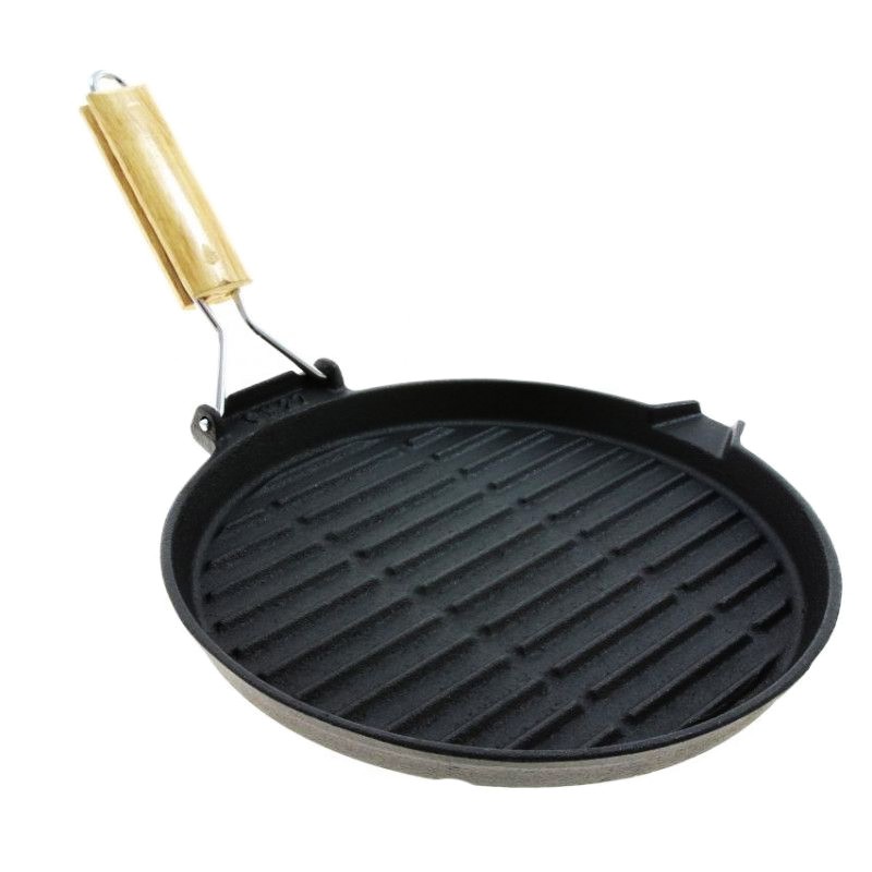Tigaie grill din fonta fara capac, cu maner din lemn pliabil, 24cm, Rosberg