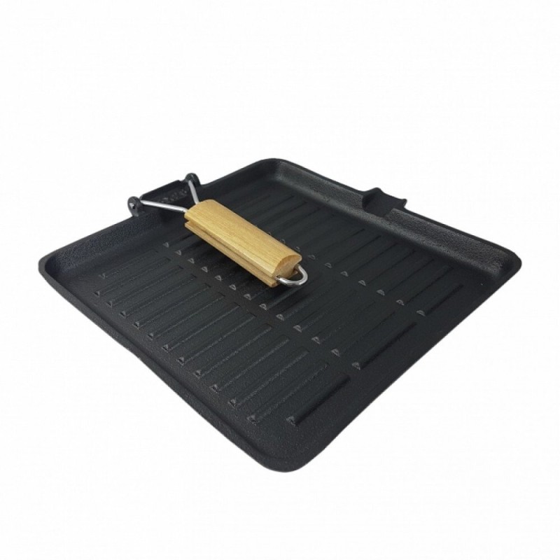 Tigaie grill din fonta fara capac, cu maner din lemn pliabil, 24cm, Rosberg