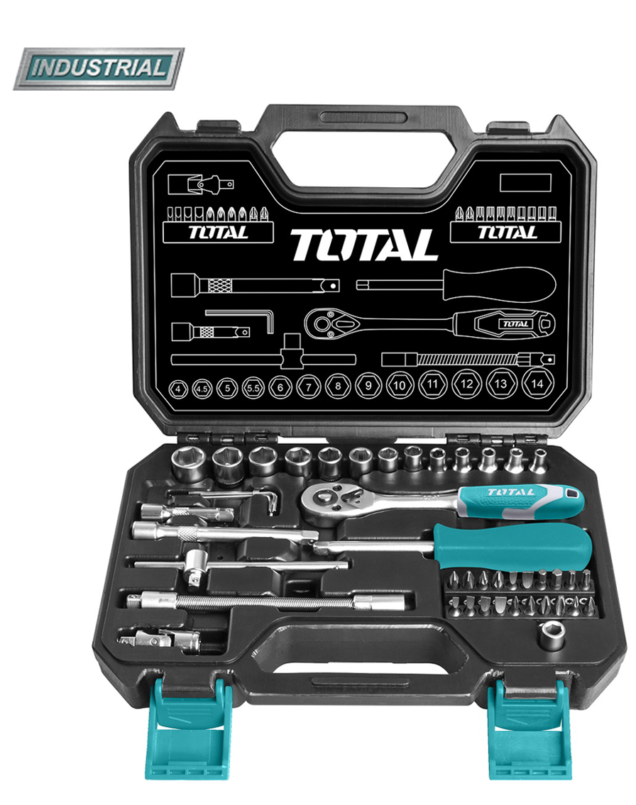 TOTAL – Trusa de chei tubulare 1/2 cu antrenor 12 piese (INDUSTRIAL)